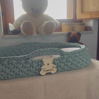 Realizzato a mano con filato di alta qualità bobbiny, il nostro fasciatoio è atossico e abbinabile alle culle Moses basket. Con una misura di 35 x 70, è dotato di un comodo materassino per il massimo comfort del tuo bambino. Trasforma i cambi pannolino in un momento di coccole e relax.